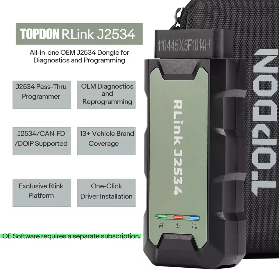 TOPDON RLink J2534 Pass-Thru Programmer Enhanced J2534 VCI OEM Reprogramming and Diagnostic Tool